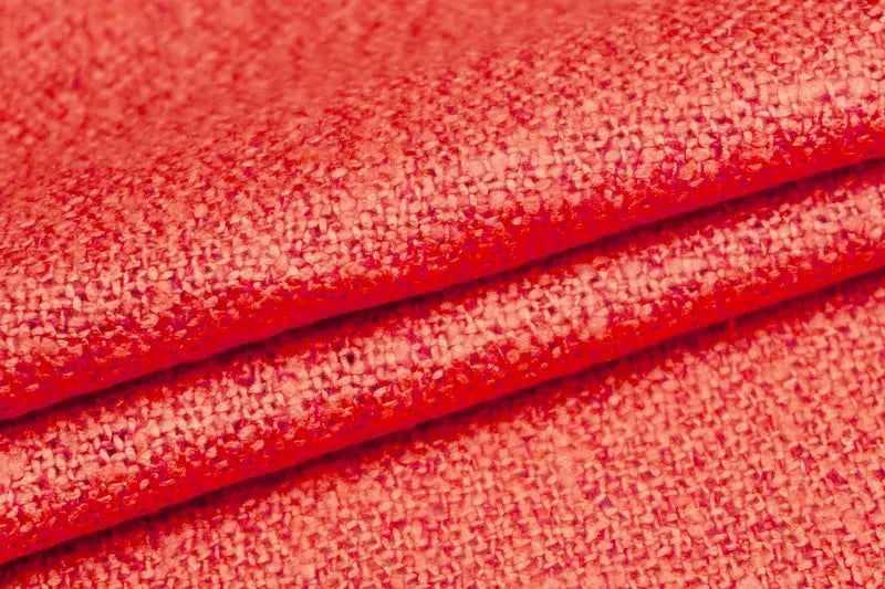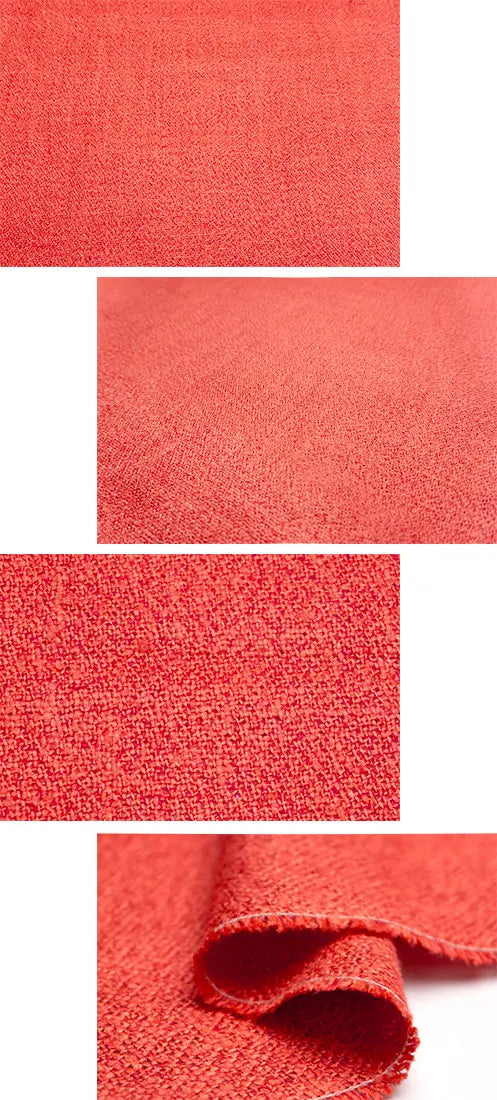 ニュアンスのあるポピーレッドのスラブヤーンを用いて、織り上げられたファンシーツイード。 上質な素材ならではな穏やかな光沢が踊る、上品なツイード。