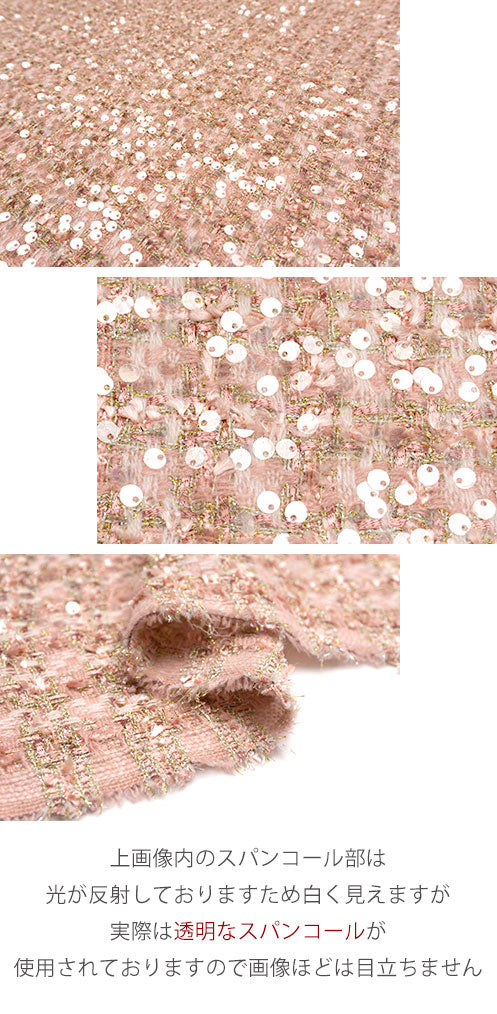 角度によってきらめく透明のスパンコールが印象的なファンシーツイード。