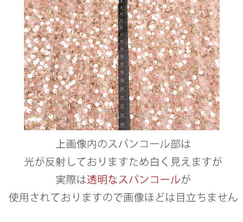*スパンコールの有効幅(スパンコールが付いている幅)は、生地幅142cmの内 124cmとなります。