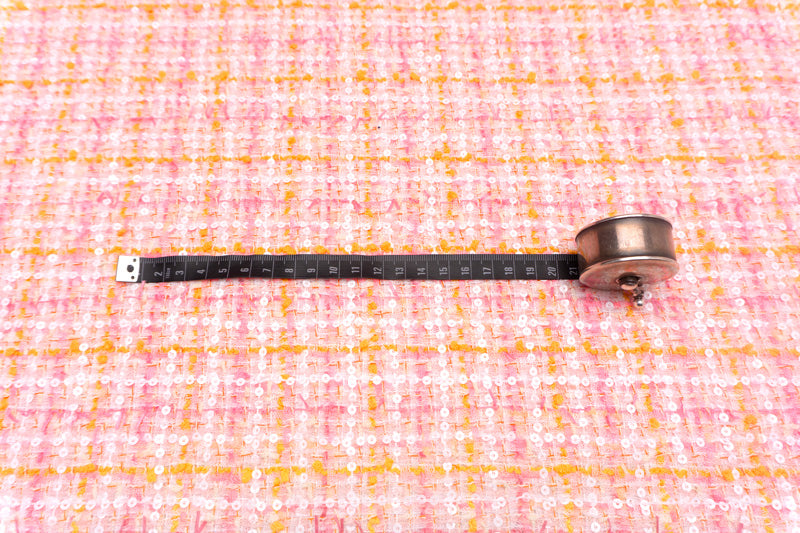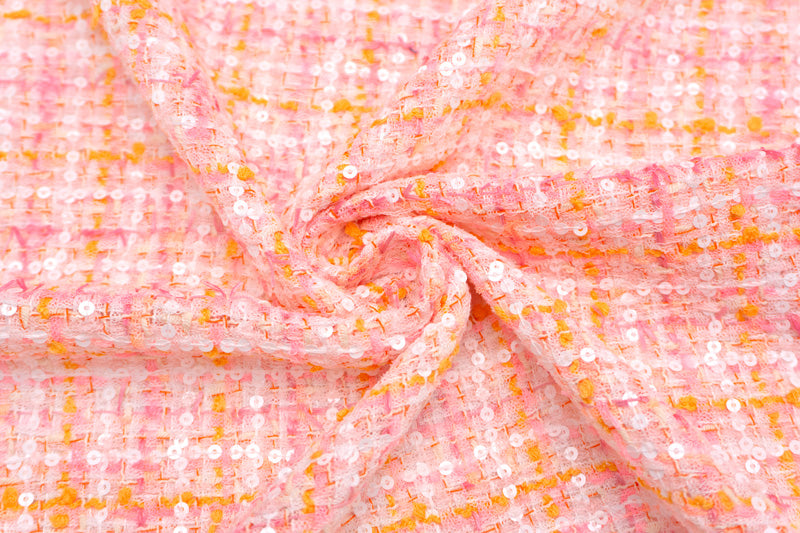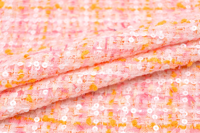 カラフルなネオンカラーが鮮やかな賑わいと、チュールヤーンが表面感を添えている華やかなお生地。