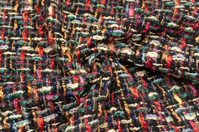 カラフルな賑わいのあるヤーン使いが印象的なファンシーツイード。
